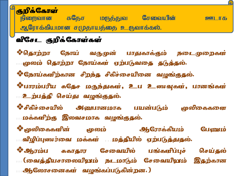  Free Ayurvedic Dispensary – Kokuvil mainly providing Out Patient Department (OPD) Treatment to Patients.